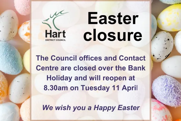 Our offices and Contact Centre will be closed over the Easter Bank Holiday, reopening at 8.30am on Tuesday 11 April.
